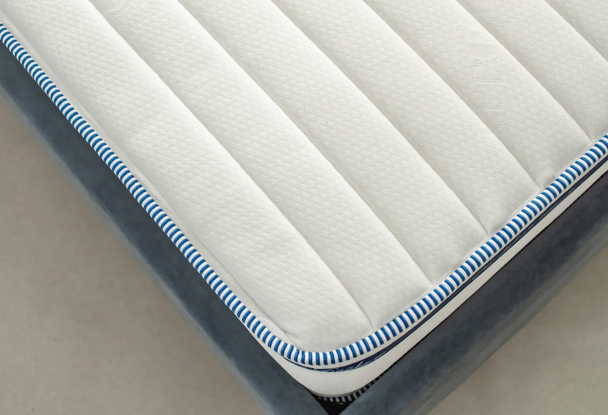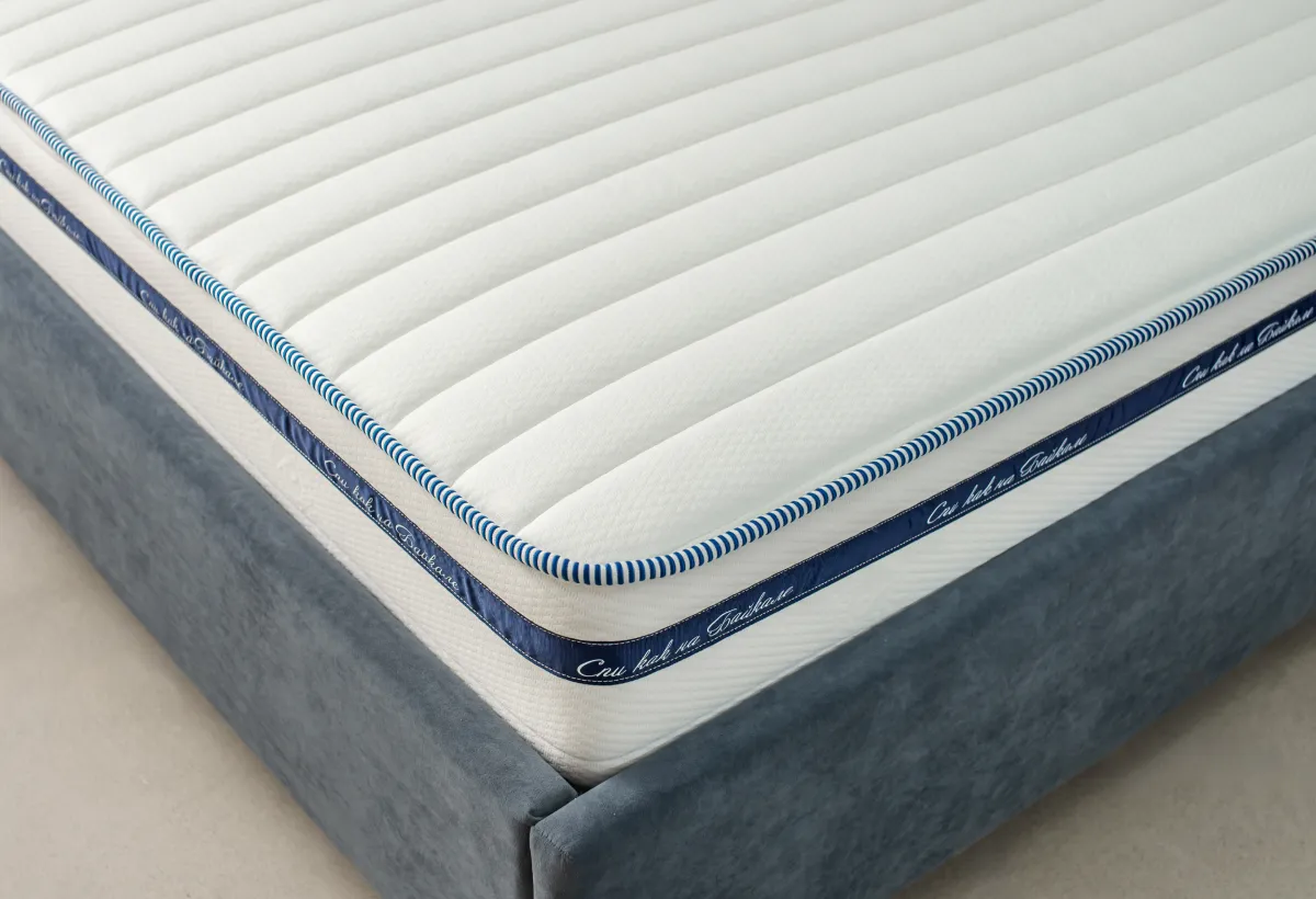 Серия матрасов Just предлагает идеальное сочетание стиля и комфорта, создавая уютную атмосферу в вашей спальне. Каждый матрас из этой серии отличается аккуратной отделкой с голубым кантом по краю, что придает ему современный и элегантный вид. Мягкая ткань с едва заметным узором покрывает поверхность матраса, обеспечивая не только визуальную привлекательность, но и невероятный комфорт.